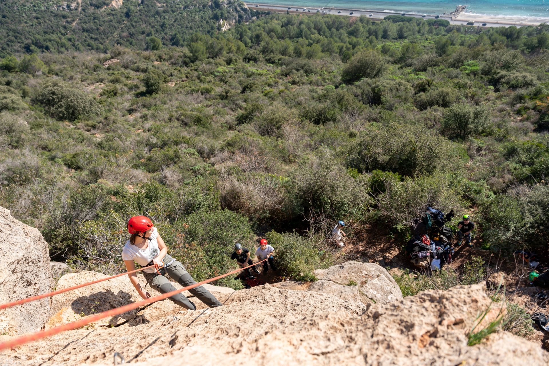 Stage di arrampicata lead su roccia; top-rope e scalata da primi.